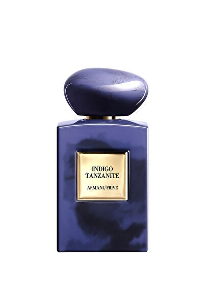 Altın rengi ile zenginleştirilen Indigo Tanzanite şişesi mavi ve mor renklerinin karışımından oluşur ve Armani Privé’nin ikonik kapağı ile saklanır